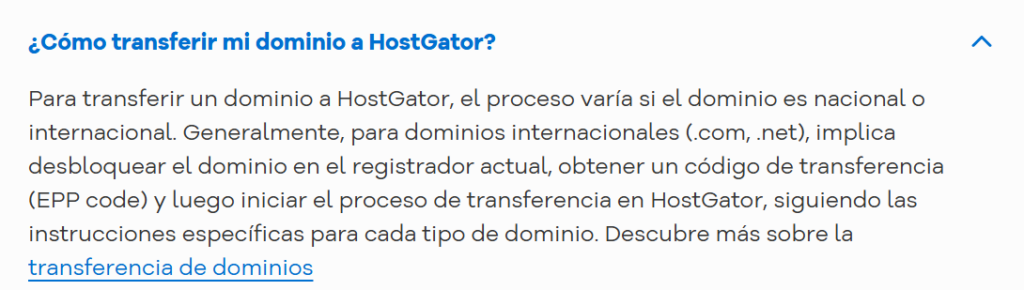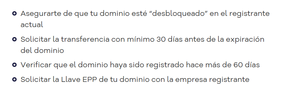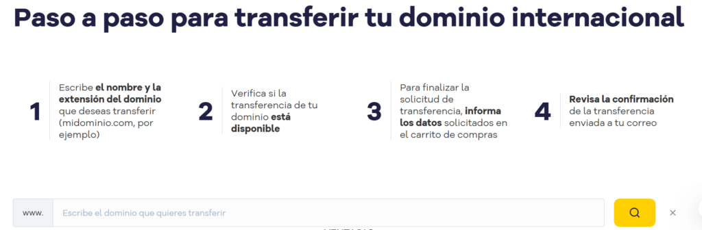 Un dominio web lo podemos identificar también con el nombre de una página web o el nombre de tu sitio web, la cual uno la contrata mediante una plataforma por ejemplo con godaddy o hostgator entre otros, y si queremos que nuestro dominio sea administrado por otra plataforma tenemos que realizar un procedimiento el cual se conoce como «transferir» dominio, aunque como usuario podríamos usar palabras similares como migrar dominio, mover dominio, trasladar dominio, etc. Pero en las diferentes plataformas la encontraremos como transferir.